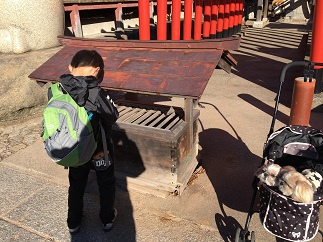 自分でお賽銭を入れて、お願い事をしておりました
