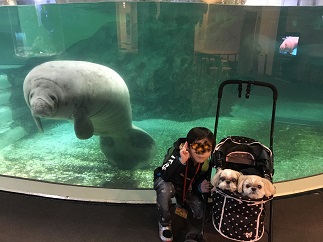 前日に水族館で買ったおみやげ マナティのぬいぐるみと(笑)