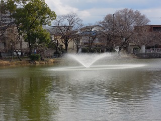 ランチの後、すぐ近くの万代池公園で少しお散歩しました