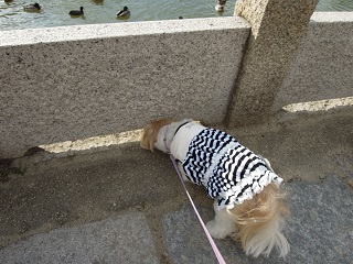 またカルガモを見つめるこの2人(笑)