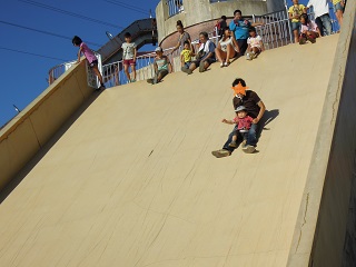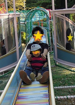 鳥さんをしばらく見てから、むぅくんの所へ戻ると、すべり台まつりは