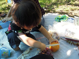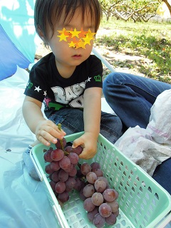 ござに座って、の~んびりまったり、いっぱいぶどうを食べるはずが。。。