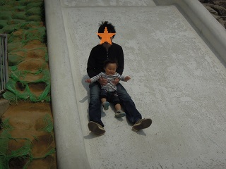 嬉しそう~なお顔ですべってきては、もう1回