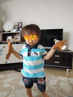 「ぼう!ぼう!(帽子のこと)」と言いながら、帽子の形をしたおもちゃを