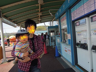 「お父さんと乗っておいで~。もんちゃんとみぃちゃんと待ってるから」