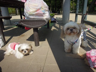 もこみくはいっぱい歩いたので、ちょっとベンチで休憩