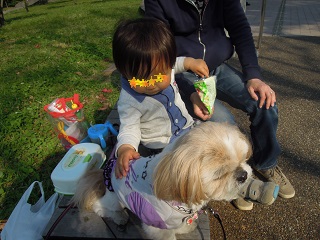 食べながらもんちゃんなでなで~