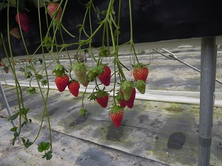 ハウス内に入ると、いちごのほんのり甘い香りが