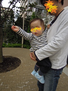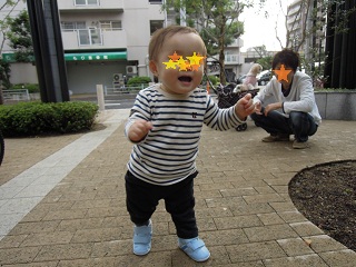 マンションのちょっとした庭?的な所で初歩き~