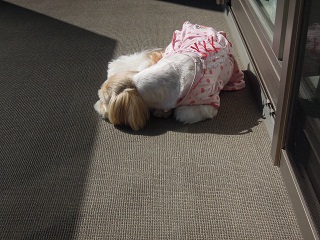 ベランダでお昼寝してるもんちゃん