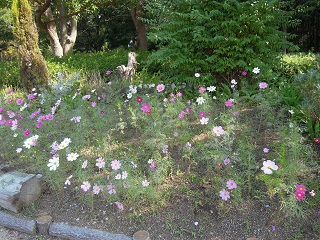 小さい花壇にコスモスが