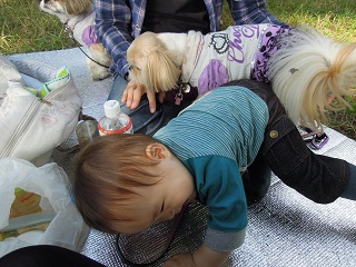 1時間くらいお散歩した後、ござを敷いて休憩することに