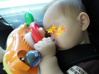 帰りの車の中で、爆睡中のむぅくん
