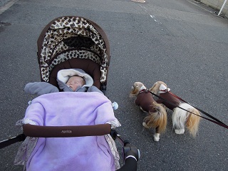 1ヶ月検診もお宮参りも終えたので、昼間少しお散歩に出かける