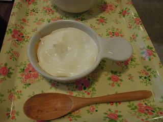 ヨーグルトソースの下にプリンが