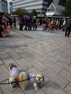 仮装した人たちで、会場はすごい人
