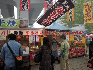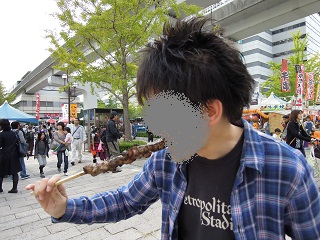 行列のできている牛串焼きを買いに