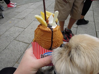 たいの口から、生クリームとフルーツが飛び出してるの
