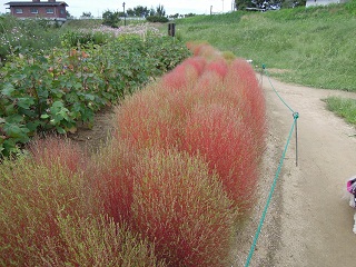 大分大きくなって、紅く色づいてきてるコキアを見れて、ちょっと感動