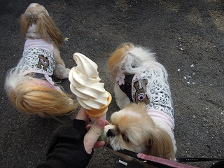 下で、ソフトクリームを