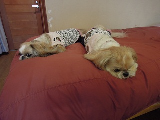 ごはんを食べたら、もこみく爆睡