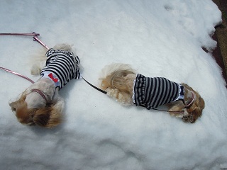 雪の上で寝てると、やっぱり気持ち良いのかな~