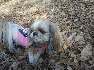 みくぽん、クンクンしすぎてお顔が落ち葉まみれ(笑)