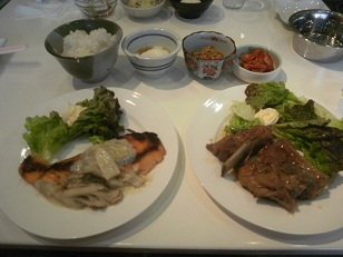 サーモン きのこのホワイトソースかけ&スペアリブ