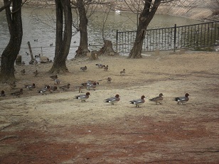 池の周りを普通にいっぱい歩いてる