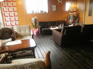 私たちは、長椅子のあるテーブル席に座らせてもらいました