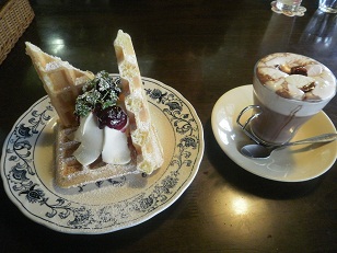 クリームチーズとブルーベリーのワッフル&ホットココア