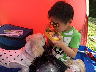 なぜか、むぅくんのお弁当に興味津津のもこ(笑)