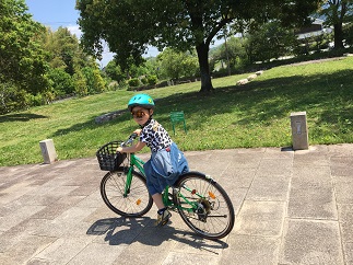 お父さんはもこと、自転車に乗っています