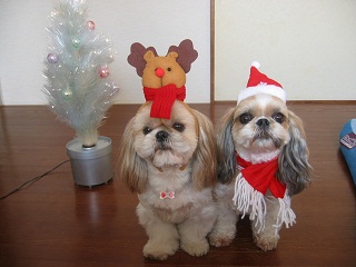 (←コレは馬~笑)100均で買ってきたサンタ帽と、トナカイのカチューシャを