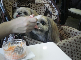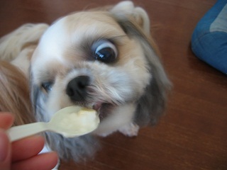 2人とも、ヨーグルトいっぱいつけちゃってぇ~