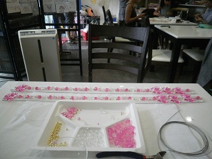 ワイヤーにビーズを通すのはダーリンも手伝ってもらったりして、