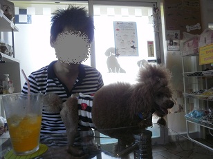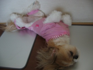 このプーちゃん、すごいジャンプ力で、ダーリンの膝の上にすっぽり