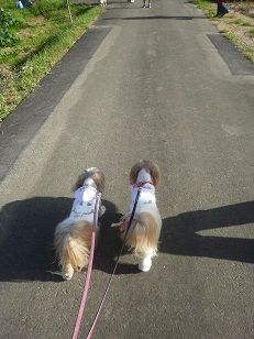 夕方になって、もこみくとお散歩に行って