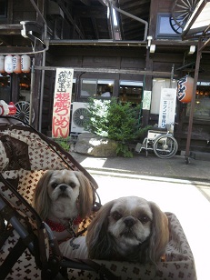 ここは、わんこは入れないから、前で写真だけね