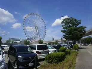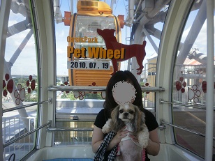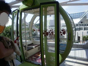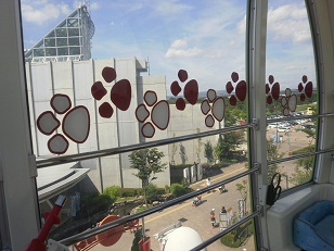 外のあまりの暑さに。。。(観覧車内はエアコンが効いていて快適♪)