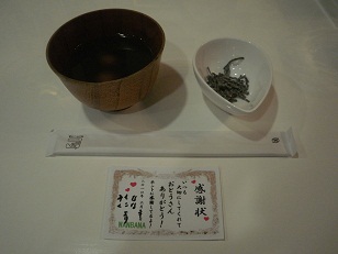 かわいい感謝状と、おしるこのサービス