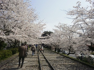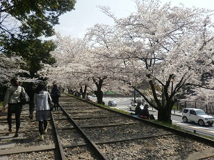 使われることのなくなった線路が、今は桜のトンネルになって
