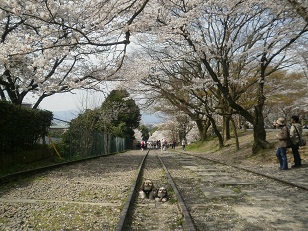 急な坂を、貨車を使って引っ張り上げるために作られた線路です