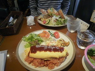 上の卵を真ん中から割ると、ふわふわ卵がとろ~~り