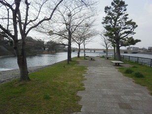 向こう~の方に見える、『朝霧橋』まで歩きま~す