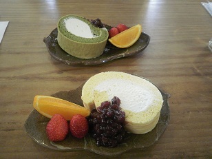 『通園』さんの栗と茶団子と小豆が乗った、豪華な抹茶ソフト