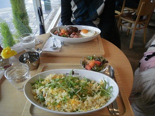 私はエビピラフ(手前)、ダーリンはロコモコ(奥)を