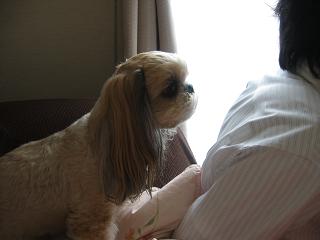 私が動くと、お散歩かな??って期待して付いて来るんです