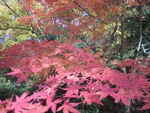 どんぐりの横には、この日見た中で一番きれいな色づきのモミジが