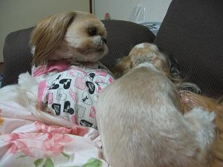 みくってば、もこに気付かずソファーの上を